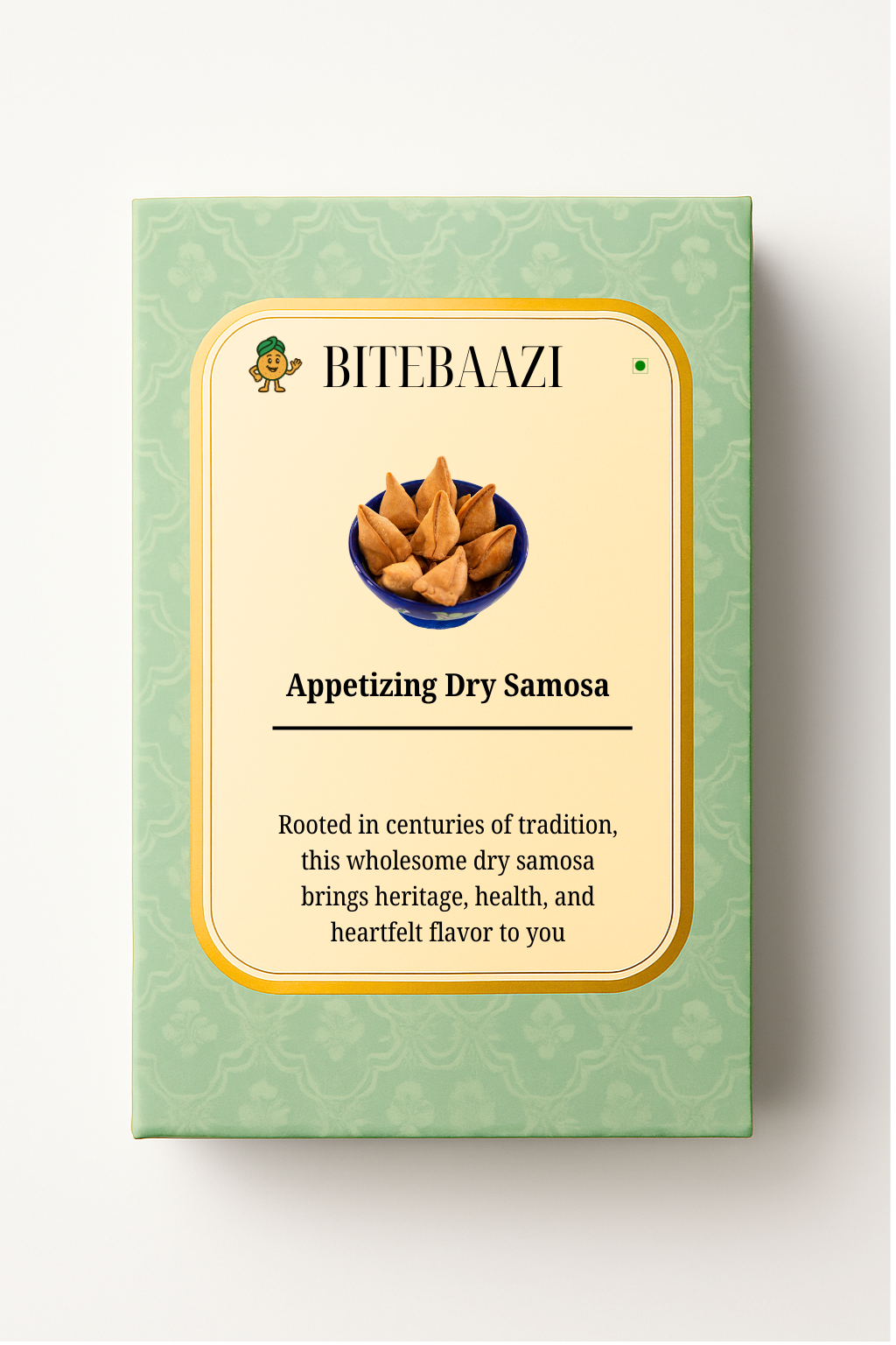 Enjoy the timeless taste of India with Bite Baazi Dry Crispy Samosa – a bite-sized delight with a golden, crunchy shell and a savory, spiced filling. Unlike the regular samosa, this dry variant stays crisp for longer, making it the perfect travel companion and tea-time snack.